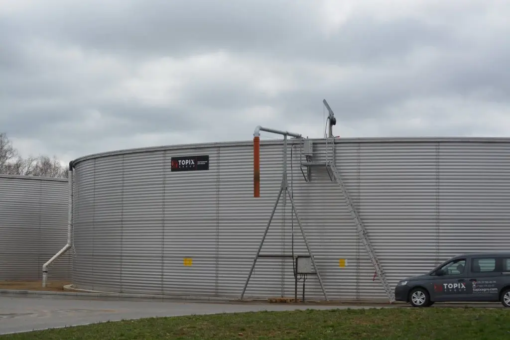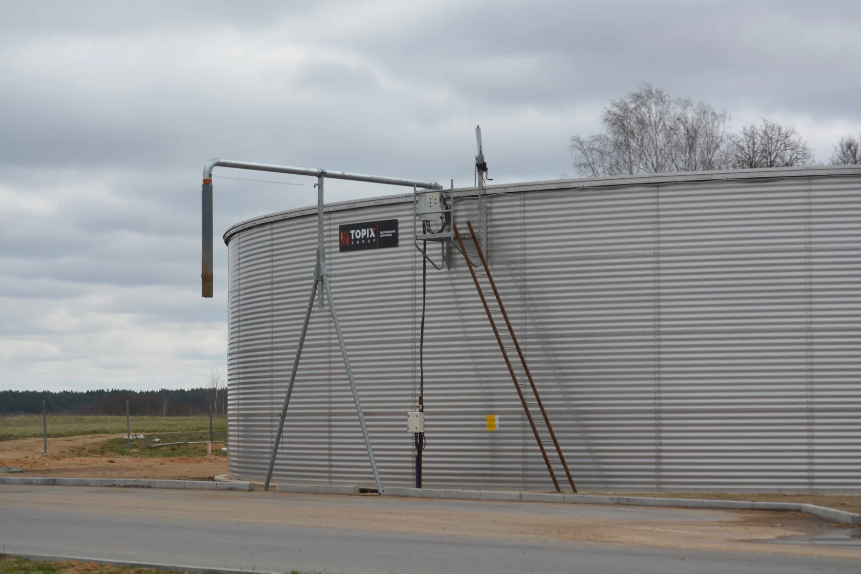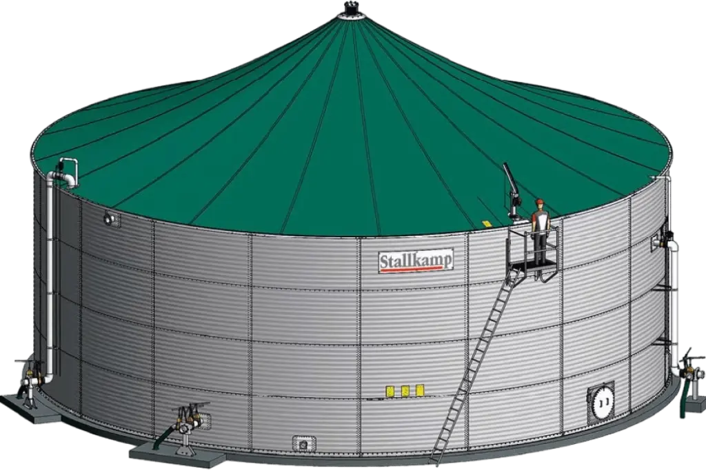 Наши емкости можно использовать для жидкого навоза, а также в биогазовых установках и установках для очистки сточных вод. Применение современных материалов делает конструкцию емкости очень надежной. Профили по периметру обеспечивают жесткость системы, что позволяет достичь больших объемов.Емкость имеет сегментную конструкцию и собирается из усиленных профилем листов стали на простом бетонном основании. Листы соединяются в местах горизонтальных стыков и свинчиваются с U-образным профилем винтами и подкладными шайбами из НЖ-стали. Стенка емкости соединяется с железобетонным фундаментом по периметру при помощи уголка из нержавеющей стали, который крепится посредством дюбелей из НЖ-стали. Стыки и место соединения с железобетонной плитой уплотняются специальным герметиком, устойчивым к воздействию жидкого навоза и сточных вод.